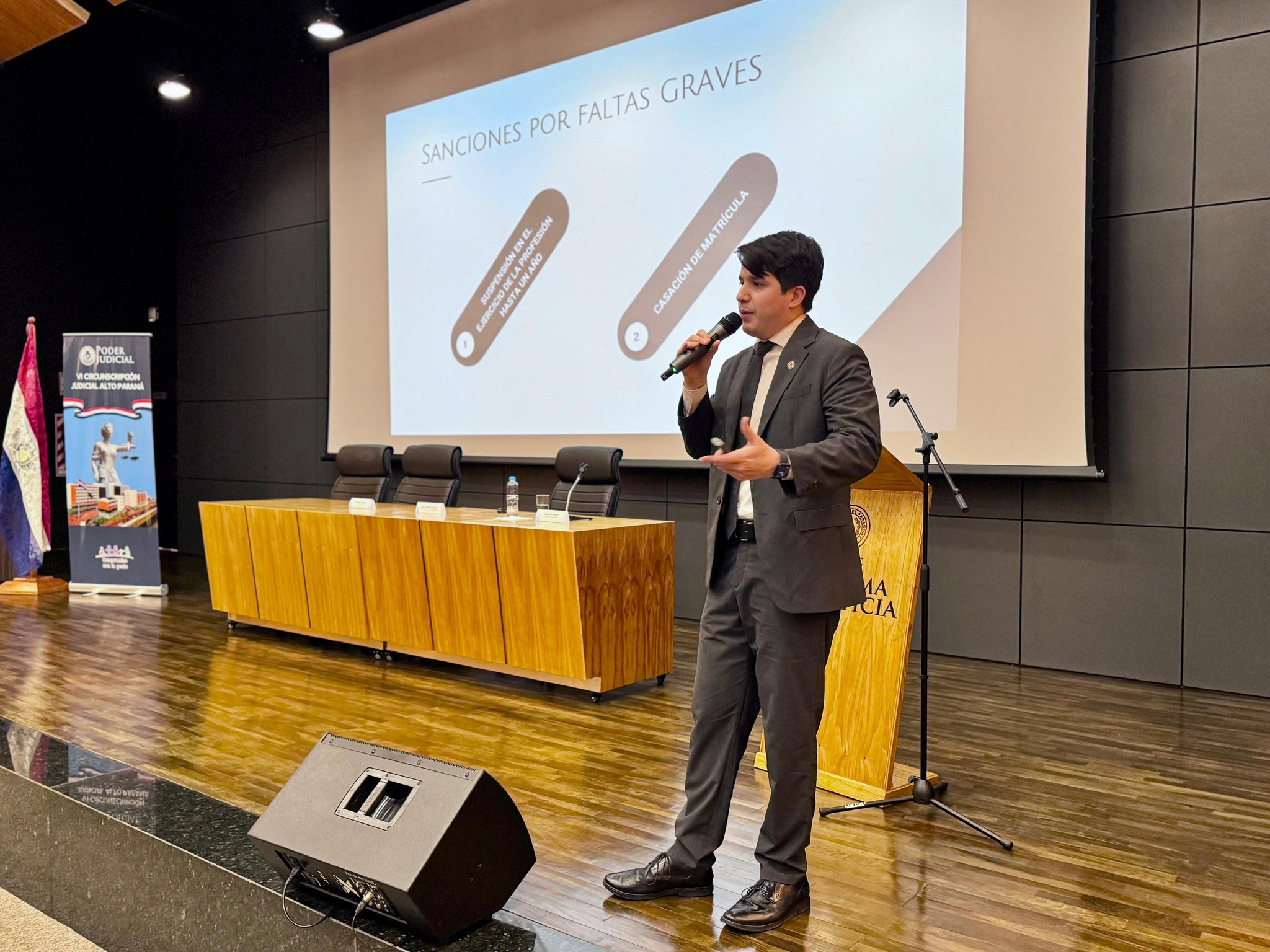 En el marco del Diplomado Especializado en el Fuero Civil y Comercial Módulo XIII, enfocado en el Régimen Disciplinario del Poder Judicial. La jornada contó con la disertación del doctor Alex Almada Cáceres, secretario del Consejo de Superintendencia – Secretaría N.º...